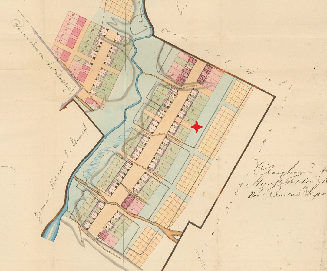Эта земля ранее принадлежала помещику, статскому советнику Ивану Александровичу Евсевьеву. На плане ниже она обозначена литерой А.