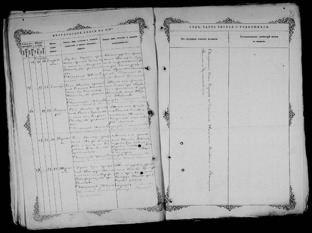 1852 год. Запись под №56 о рождении Петра: