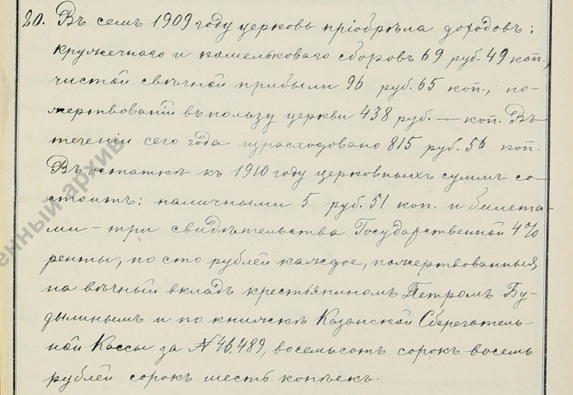 В клировых ведомостях 1909 года Будылин отмечен как вечный жертвователь.