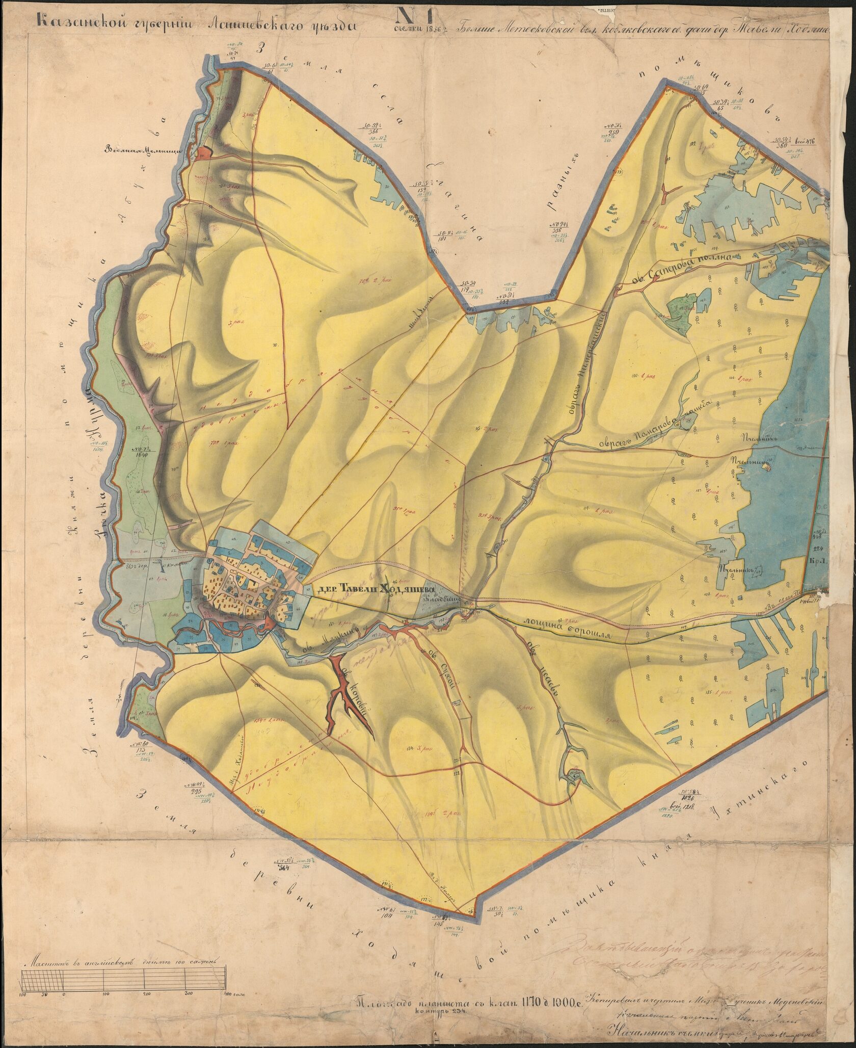 1856 год. Продолжаем прогулку по старым картам вокруг Пановки. Сегодня - планшет соседней деревни Тавели Ходяшево (Татарское Ходяшево, земля гос.крестьян) Больше-Метесковской волости, позднее - Селенгушской.