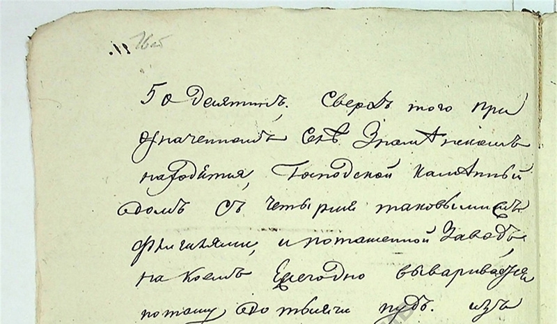 В 1828 году в деле о выдаче статскому советнику Евсееву Александру Николаевичу свидетельства на крестьян, сказано: "при означенном селе Знаменском находится господский каменный дом с четырмя таковыми флигелям и поташной завод, на коем ежегодно вываривается поташа до тысячи пудов".