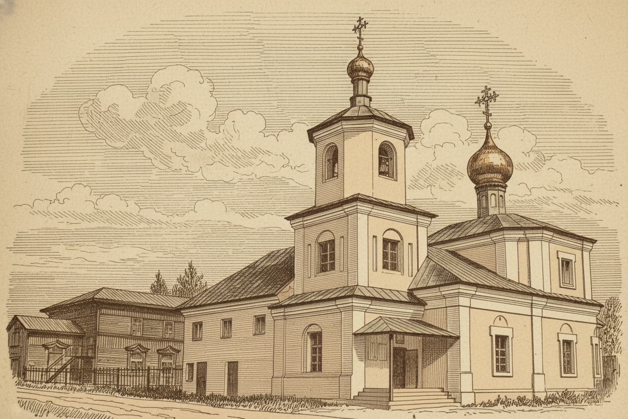 Для размещения притча в селе в 1891, 1893 и 1908 годах были построены три деревянных церковных дома с необходимыми надворными строениями. Имелся также отдельный дом для богадельни, организованной Марей Павловной Евсевьевой, в котором размещалось 5 сирот.