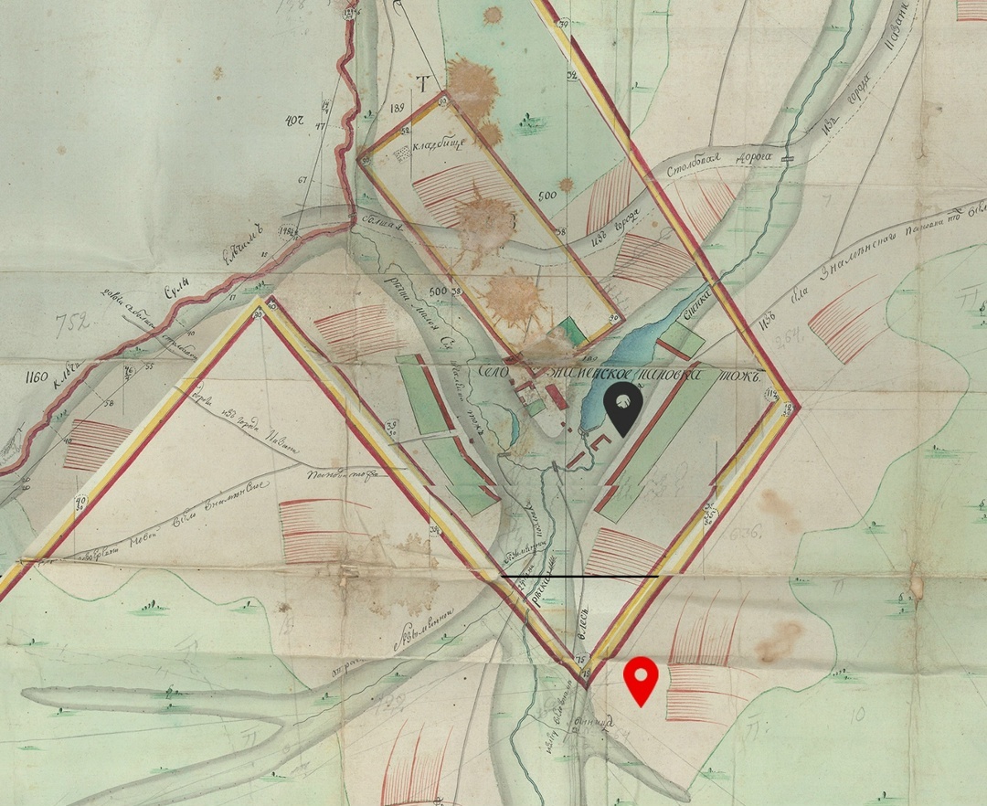 Карта межевания Пановки от 1794 года. Красная метка стоит рядом с надписью "винница":