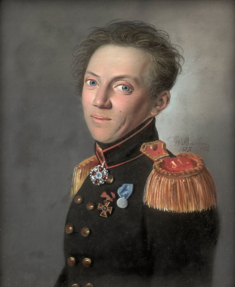 На иллюстрации: подполковник Павел Васильевич Безобразов (1786 – 1826), двоюродный брат Федора Васильевича Матюнина, сын Василия Афанасьевича Безобразова и Натальи Федоровны Матюниной-Безобразовой.