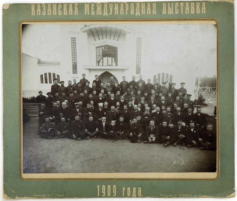 На фото: председатель Лаишевской земской управы В.Н. Белькович (во втором ряду восьмой слева), член комитета по организации Международной Казанской выставки 1909 года - с группой участников выставки.