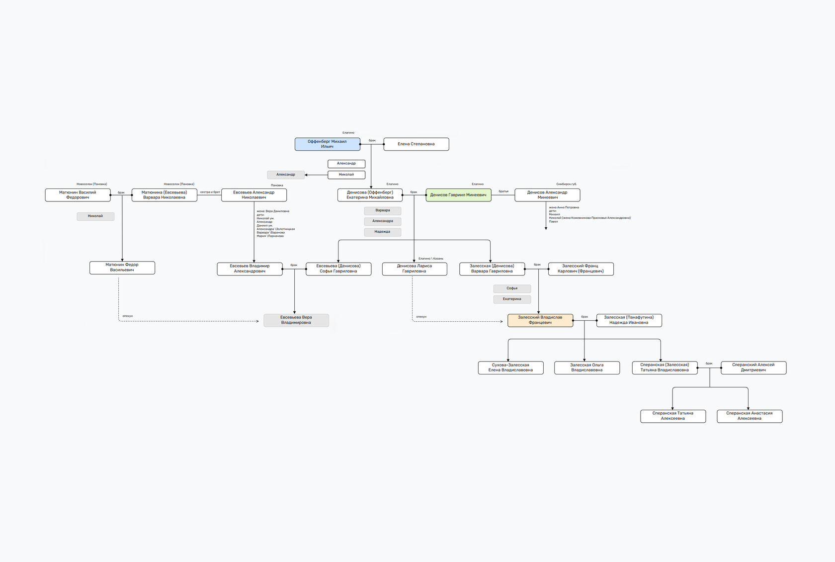 🕯 Гавриил Минеевич Денисов скончался в 1850 году, в чине губернского секретаря, от нервной лихорадки. А в 1851 году его средняя дочь Софья вышла замуж за Владимира Александровича Евсевьева.